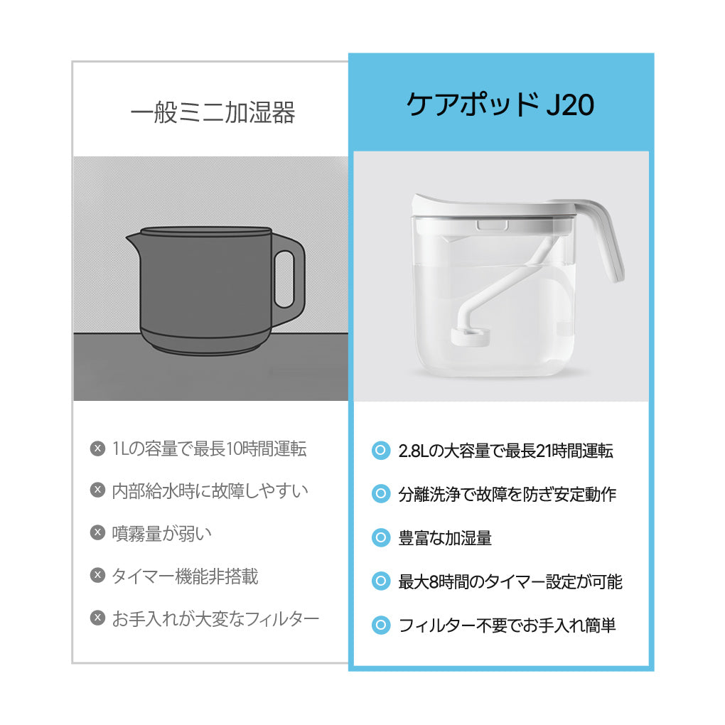 一日中しっとりとした肌を守るために開発された、美容発想の加湿器。